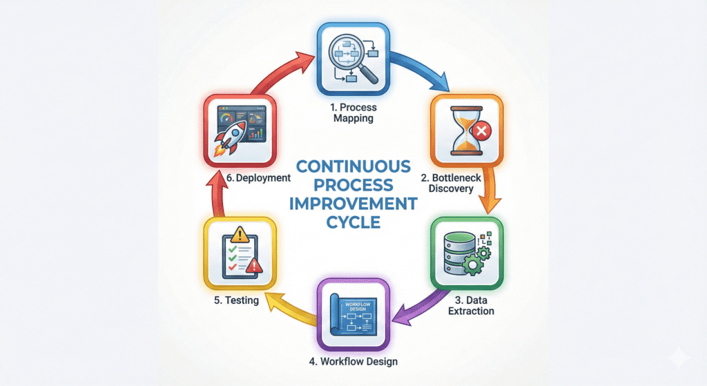 Phase 1: Process Clarity (Weeks 1-2) Map existing workflows. Document decision logic. Identify automation candidates.